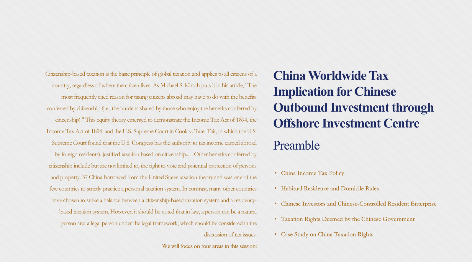 China Worldwide Tax Implication for Chinese Outbound Investment through Offshore Investment Center Back
